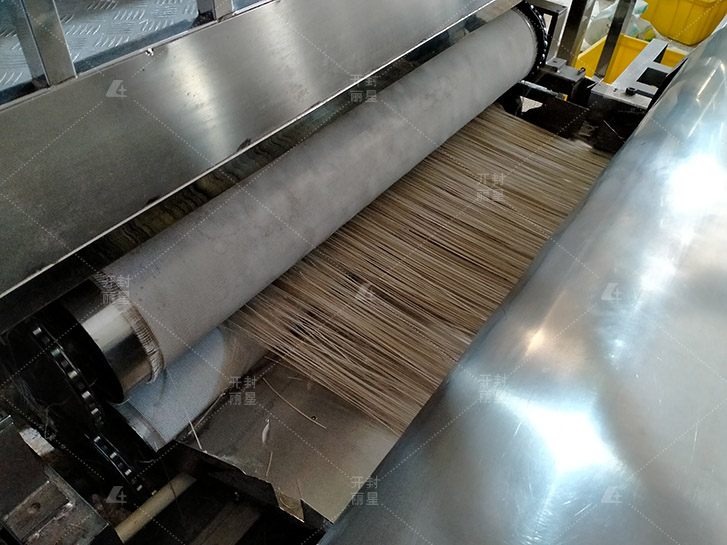自動化紅薯粉條生產(chǎn)線干淀粉入機,三小時12道工序加工干粉絲粉條出機,鋪漿切割工藝無需使用明礬,鏈條傳動運行穩(wěn)定。